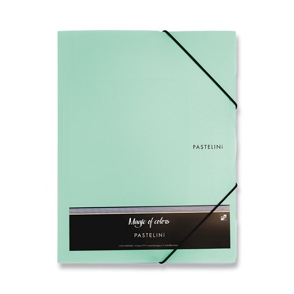3chlopňové spisové desky s uzavírací gumičkou. Vyrobené z tuhého polypropylenu v moderních pastelových barvách, tloušťka 400 mikronů. Na dokumenty A4. Rozměr 247 x 320 x 5 mm.