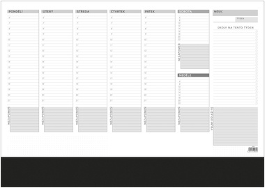 Moderní a praktický stolní plánovač ve formátu A2 s 50 listy. Jednoduchá grafika Vám pomůže efektivně naplánovat Váš týden. ofset, 90 g/m2 lepená vazba, PVC lišta v černé barvě