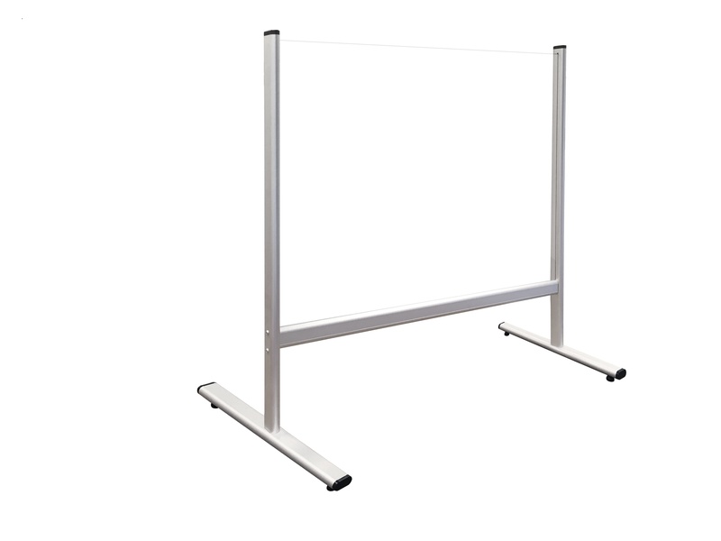 Jedná se o účinné fyzické bariéry, které mohou plnit i další funkce (informační plocha, na kterou můžete psát nebo umisťovat poznámky). Robustní hliníkový rám se stabilní základnou a 3 mm širokým transparentním plexi sklem. Vhodné pro umístění na stůl nebo pult.