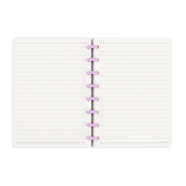Blok má pevnou obálku z odolného polypropylenu a praktickou kroužkovou vazbu, která usnadňuje otáčení stránek. Uvnitř najdete 80 linkovaných listů vhodných pro psaní, kreslení i poznámky.