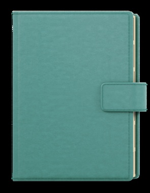 Elegantní denní diář ve formátu A5 se stylovým a znovupoužitelným obalem v tyrkysové barvě. Praktické vnitřní uspořádání nabízí množství přihrádek na vizitky, poutko na tužku a bezpečné magnetické zavírání. Diář bude působit luxusně a profesionálně – ideální volba pro práci, podnikání i osobní organizaci. jemný matný materiál, ražba, oboustranná pěnová výplň desek, obšití v barvě potahu, magnetická přezka, poutko na tužku, 3 vnitřní kapsy, šitá vazba V8, kapitálky, stužka, perforované rožky, papírová manžeta
