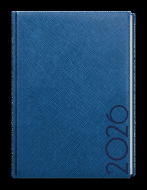 Neobyčejný denní diář s lesklým povrchem ze strukturovaného materiálu v modré barvě je vyráběný ve formátu A5 a má velký prostor pro poznámky a plánování.