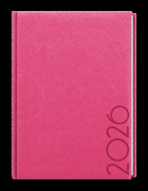 Neobyčejný denní diář s lesklým povrchem ze strukturovaného materiálu v růžové barvě je vyráběný ve formátu A5 a má velký prostor pro poznámky a plánování.