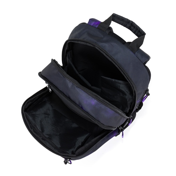 A hátizsák két fő rekesszel és egy elülső zsebbel rendelkezik erős cipzárakkal és praktikus húzókkal. Belül található párnázott laptop rekesz, kulcstartó karabiner, zseb apróságokra és egy rejtett zseb a hátrészen.