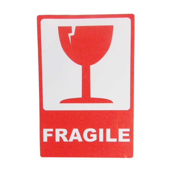 Az öntapadó FRAGILE (magyarul „Törékeny” vagy „Törhető”) feliratú szállítási címkékkel láthatóan jelölhetők azok a küldemények, amelyek szállítás során óvatos kezelést igényelnek. A feltűnő piros pohár szimbólum egyértelműen figyelmezteti a fuvarozókat és a raktárosokat a csomag törékeny tartalmára.