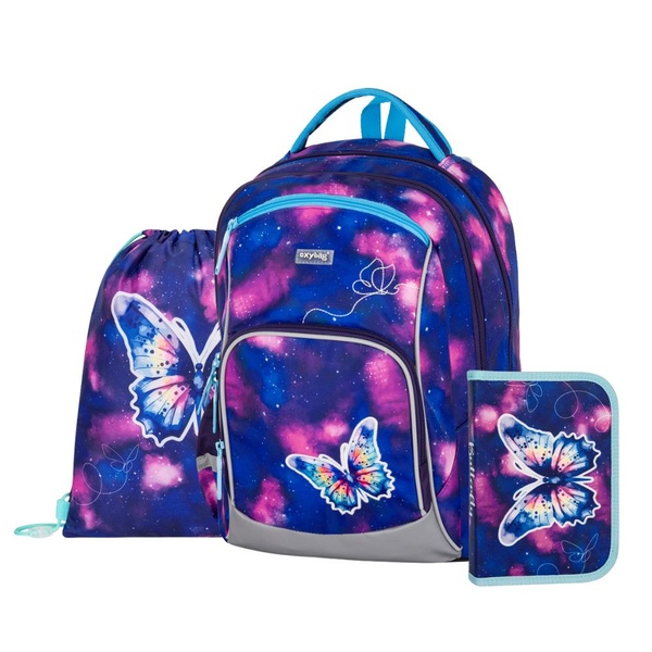 Az OXY GO iskolai szett - hátizsák, tolltartó és táska modern dizájnjával és átgondolt funkcionalitásával lenyűgöző. Ideális választás 1-3. osztályos, 125 cm-es magasságú gyermekek számára.