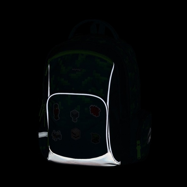 A belső zsebek rengeteg helyet kínálnak tankönyveknek, füzeteknek és egyéb iskolai eszközöknek. A masszív, vízálló alj megvédi a tartalmat a szennyeződésektől és a szivárgástól. Két oldalsó zseb található - az egyik cipzáras, a másik nyitott, például egy cumisüvegnek. A fényvisszaverő elemek nagyobb biztonságot nyújtanak az iskolába menet.