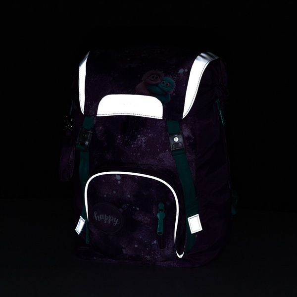 A biztonságot növeli a megerősített vízálló alsó rész és számos fényvisszaverő elem. A praktikus dupla mágneses zár megkönnyíti a nyitást, a fő rekesz rengeteg helyet kínál, és egy belső elválasztó és húzózsinór egészíti ki. Van egy oldalsó zseb egy üvegnek és egy elülső zseb egy uzsonnának. Tartalmaz továbbá 3 cserélhető jelvényt is, amelyeknek köszönhetően a gyermek a hangulata szerint díszítheti a hátizsákot.