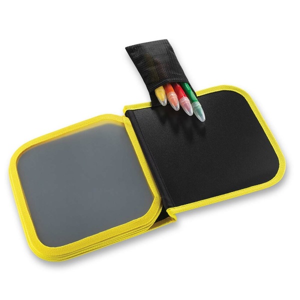 A gyerekek fekete, letörölhető oldalakra rajzolnak Maped gélkrétákkal. A kész rajzok könnyen letörölhetők egy kendővel, így újra kezdhetik az alkotást. Ennek köszönhetően a készlet többször felhasználható és támogatja a kreatív játékot.