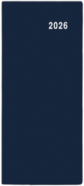Jednoduchý a praktický měsíční diář vyrobený z jemného hladkého materiálu s polomatným povrchem modré barvy. Ideální pro každého, kdo si oblíbil měkkou šitou vazbu. jemný hladký materiál PVC, potisk roku bílou barvou, šitá vazba V1, ofset, 70g/m2