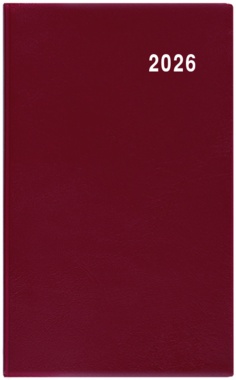 Jednoduchý a praktický měsíční diář vyrobený z jemného hladkého materiálu s polomatným povrchem v barvě bordó. Ideální pro každého, kdo si oblíbil měkkou šitou vazbu. jemný hladký materiál PVC,potisk roku bílou barvou, šitá vazba V1, ofset, 70g/m2
