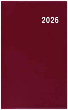 Jednoduchý a praktický měsíční diář vyrobený z jemného hladkého materiálu s polomatným povrchem v barvě bordó. Ideální pro každého, kdo si oblíbil měkkou šitou vazbu. jemný hladký materiál PVC,potisk roku bílou barvou, šitá vazba V1, ofset, 70g/m2