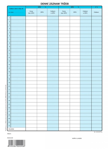 Papírenské zboží - Denní záznam tržby, A4, volný list 1090Magnifier ico