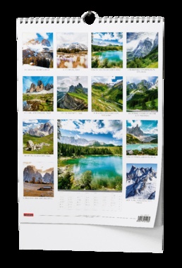Nástěnný kalendář s nádhernými obrázky působivých Alp. Papír: křída lesk, 135 g/m2 Obálka: křída lesk 150 g/m2 Karton je z kvalitní bílé lepenky Dvojitá kovová spirála "twin wire" po celé šířce kalendáře s háčkem pro zavěšení Baleno v průhledném sáčku s průhmatem.