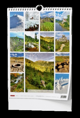 Nástěnný kalendář s obrázky Krkonoš. Papír: křída lesk, 135 g/m2 Obálka: křída lesk 150 g/m2 Karton je z kvalitní bílé lepenky Dvojitá kovová spirála "twin wire" po celé šířce kalendáře s háčkem pro zavěšení Baleno v průhledném sáčku s průhmatem.