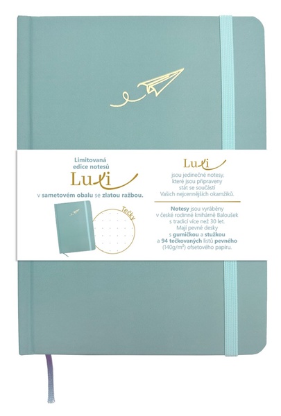 Teljes szöveg →Limitovaná edice notesů Luxi s tečkovaným blokem a sametovým přebalem v moderní ledově modré barvě se zlatým motivem vlaštovky. Stylový notes se stuhou a gumič…
