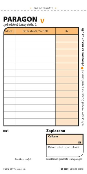 Obchodní paragon, samopropisovací číslovaný, 2 x 50 listů 1089 db
