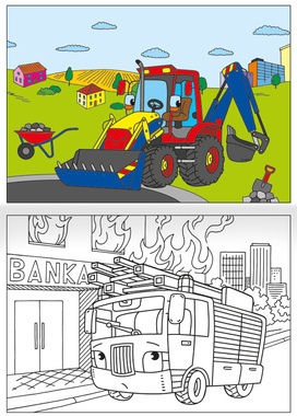 Krásné omalovánky A4 s autíčky potěší všechny malé milovníky vozidel. Součástí jsou i barevné předlohy a sada oblíbených samolepek, díky nimž si děti mohou obr…