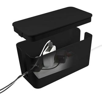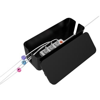 Malý box na kabely - box slouží k uskladnění kabelů a napájecí lišty - box je tvořen drážkami na obou stranách pro snadné skladování kabelů - gumové nožičky zajišťují stabilitu - ideální pro domácnost a kancelář