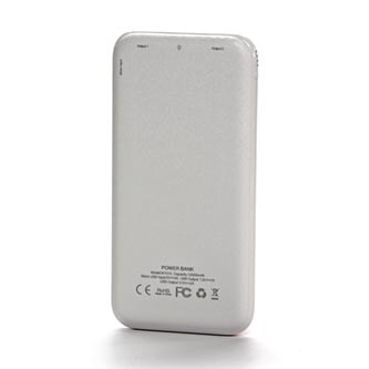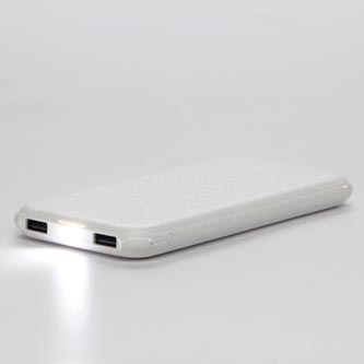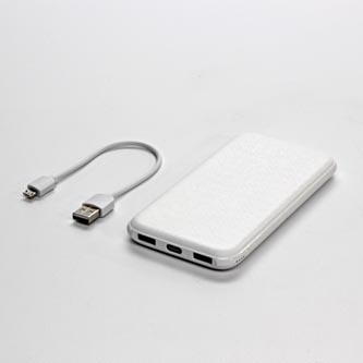 Papírenské zboží - Power bank, Li-ion, 5V, 10000mAh, mobiltelefonok töltése stb., 2x csatlakozó, fehér