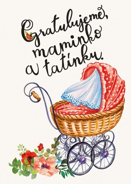 Papírenské zboží - Přáníčko BeBechy - bílé - KočárekMagnifier ico