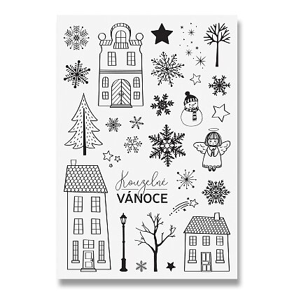 Originální gumová razítka s motivy domečků a sněhových vloček jsou ideální pro vánoční tvoření. Skvěle se hodí pro razítkování na papír při výrobě přání, obále…