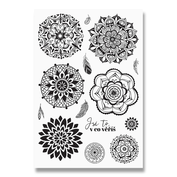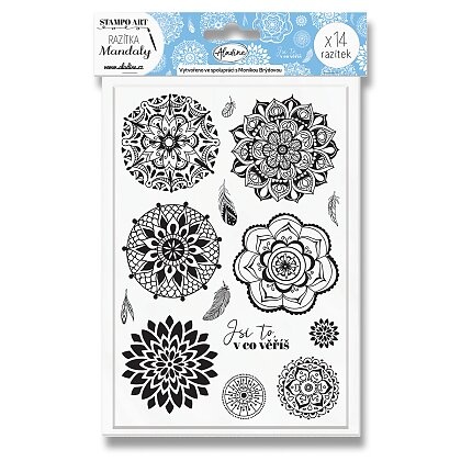 Originální gumová razítka Aladine StampoArt s motivy mandal, peříček a českého nápisu jsou ideální pro tisk na papír, karton, dřevo, textil i další povrchy. Ra…