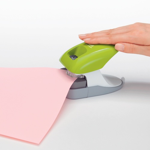Plastová sešívačka s patentovanou technologií. Sešívá bez použití drátků do 10 listů. S použitím měřidla, které je součástí sešívačky můžete na dokumentech jednoduše vytvořit dvě díry - rozpětí max. 8 cm podle rysek na měřítku a dokument založit např. do šanonu. Barva: černá.