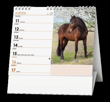 Ideální kalendář za ideální cenu s týdenním kalendáriem a v praktickém formátu pro milovníky krásných koní. Papír: křída lesk, 100g/m2 Obálka: křída lesk 135 g/m2 Stojánek je z kvalitní bílé lepenky 600g/m2 Dělená kovová spirála "twin wire"