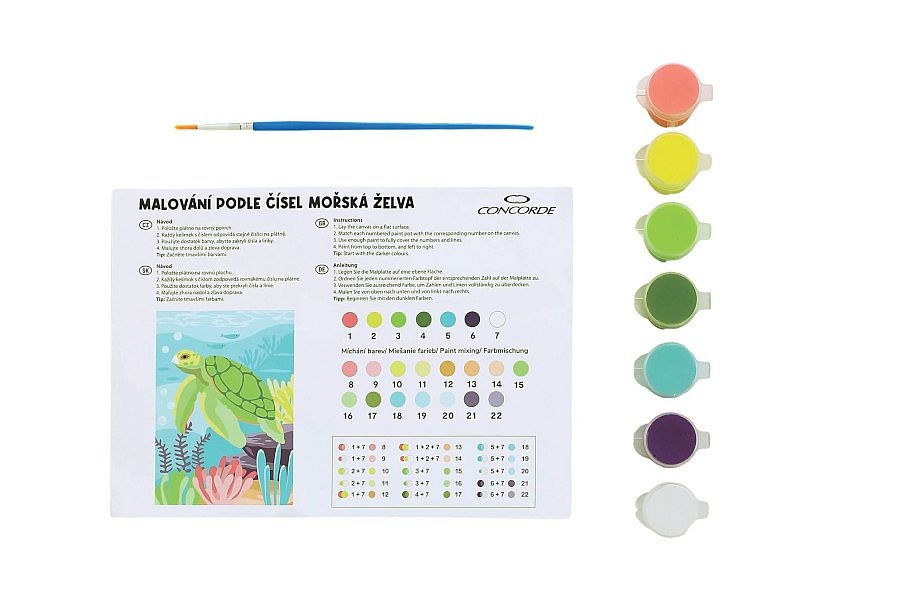Számozott festés CONCORDE Tengeri teknős egy népszerű kreatív készlet gyerekeknek és felnőtteknek, amely kikapcsolódást és alkotási élményt nyújt. Ha számozott festés tengeri teknős készletet keres, ez ideális választás.