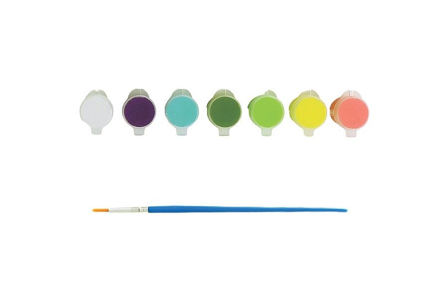 A számozott festés készlet tartalmaz egy előnyomott vásznat (20,3 × 28 cm), 7 akril festéket és egy ecsetet. A számozásnak köszönhetően kezdők számára is egyszerű.