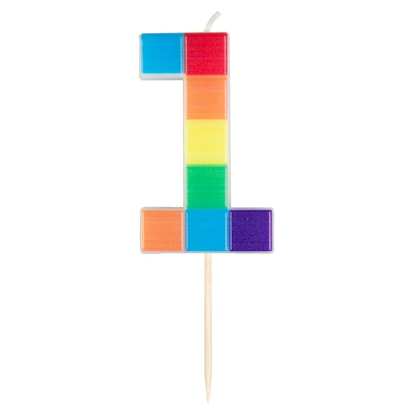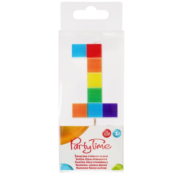 1-es számú születésnapi tortagyertya építőkocka mintával látványos tortadísz gyerek születésnapi bulikra. A színes építőkocka minta vidám hangulatot kölcsönöz a tortának.