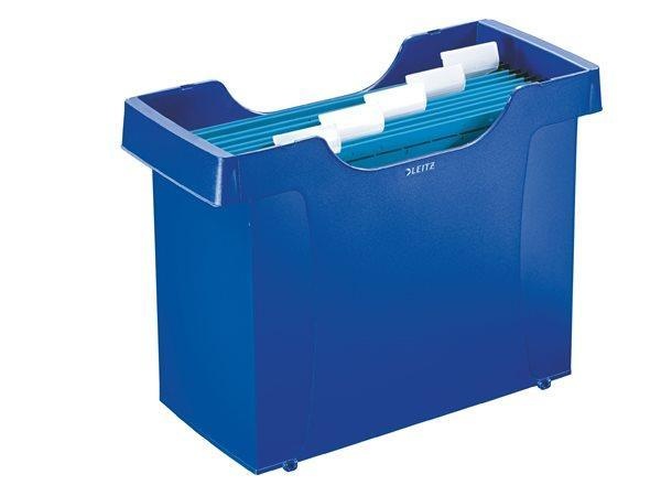 Zásobník na závěsné desky v designu řady Leitz PLUS. Vyrobený z pevného plastu. Postranní skryté výřezy pro snadné přenášení. Možnost uložení všech desek formátu A4 a až 20ks závěsných desek. Dodávané s 5 závěsnými deskami Leitz Alpha. Kompaktní stolní zá