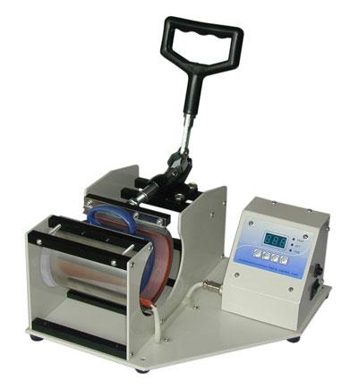 Profesionální a robustní tepelný lis na potisk hrnků sublimací s horizontálním upnutím hrnku a s digitálním displejem teploty.
