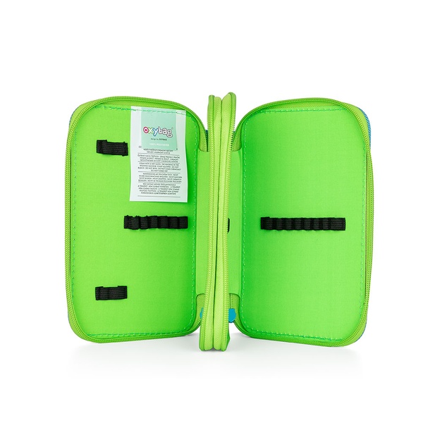 A tolltartó 25 gumihurkot tartalmaz az összes írószer és a tanításhoz szükséges apró tárgy tárolására. A tolltartó erős cipzárral rendelkezik, nagy húzással a könnyű kezelés érdekében. Az egyik emelet átlátszó rekesszel van felszerelve a heti beosztáshoz.