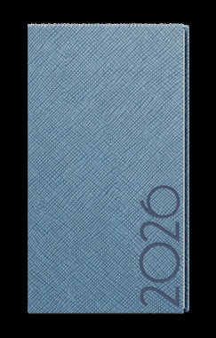 Kapesní týdenní diář v modrošedé barvě se strukturovaným povrchem. Moderní doplněk do každé kapsy. Diář má velký prostor pro poznámky a plánování. strukturovaný materiál s lesklým povrchem, ražba roku, šitá vazba V8, stužka, perforované rožky, ofset, 70g/m2