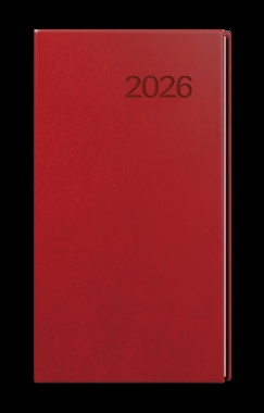 Kapesní týdenní diář v barvě bordó je vyráběný z jemné hladké vivelly. Trendy a praktický doplněk do každé kapsy. Diář má velký prostor pro poznámky a plánování. jemný hladký materiál, ražba roku, šitá vazba V8, stužka, perforované rožky, ofset, 70g/m2