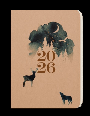 Týdenní diář s obalem v přírodním provedení. Módní doplněk s prostorem pro poznámky a plánování. tištěná grafika na hnědém přírodním papíru Kraft, měkká vazba, stužka, kapitálky, kulaté rožky, ofset, 70g/m2