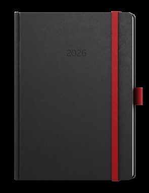 Neobyčejný týdenní diář s matným povrchem ze strukturovaného materiálu s červenou gumičkou a poutkem. Je vyráběný ve formátu A5, má velký prostor pro poznámky …