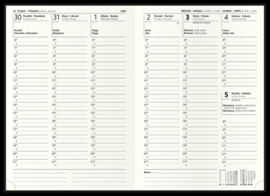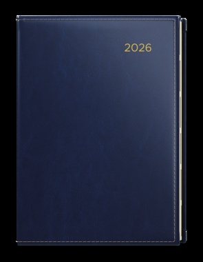 Týdenní diář vyrobený z modré koženky s moderní zlatou ražbou roku. Diář, který povýší jakoukoli Vaši schůzku. jemný hladký materiál s lesklým povrchem, ražba roku, obšití v béžové barvě, jednostranná pěnová výplň desek, šitá vazba V8, kapitálky, stužka, perforované rožky, ofset, 70g/m2, krémový papír