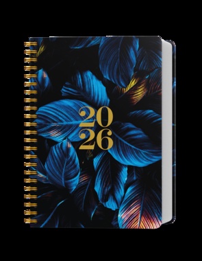 Týdenní diář v romantickém stylu ve spirálové vazbě a s trendy motivem na obalu. Módní doplněk s prostorem pro poznámky a plánování. oboustranná tištěná grafika potažená nepoškrabatelným matným laminem s parciálním lakem na přední straně, zlatá vazba twin wire a zlatá ražba roku, kulaté rožky