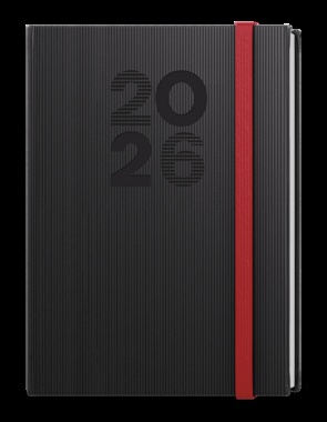 Týdenní diář formátu A5 vyrobený ze strukturovaného materiálu v černé barvě a s gumičkou. Oblíbená grafika vnitřního bloku Vám pomůže účelně plánovat Vaše dny.