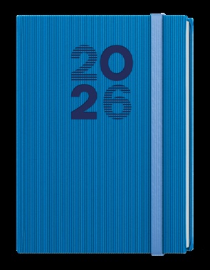 Týdenní diář formátu A5 vyrobený ze strukturovaného materiálu v modré barvě a s gumičkou. Oblíbená grafika vnitřního bloku Vám pomůže účelně plánovat Vaše dny.