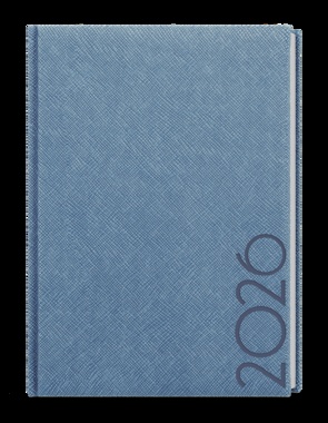 Týdenní diář v modrošedé barvě se strukturovaným povrchem. Moderní doplněk v oblíbeném formátu. Diář má velký prostor pro poznámky a plánování. strukturovaný materiál s lesklým povrchem, ražba roku, jednostranná pěnová výplň desek, šitá vazba V8, stužka, perforované rožky, vlepená kapsa, ofset, 70g/m2