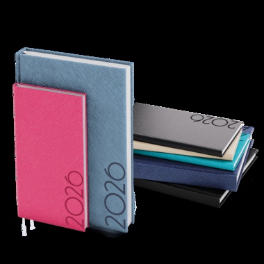 Týdenní diář v pudrové barvě se strukturovaným povrchem. Moderní doplněk v oblíbeném formátu. Diář má velký prostor pro poznámky a plánování. strukturovaný materiál s lesklým povrchem, ražba roku, jednostranná pěnová výplň desek, šitá vazba V8, stužka, perforované rožky, vlepená kapsa, ofset, 70g/m2