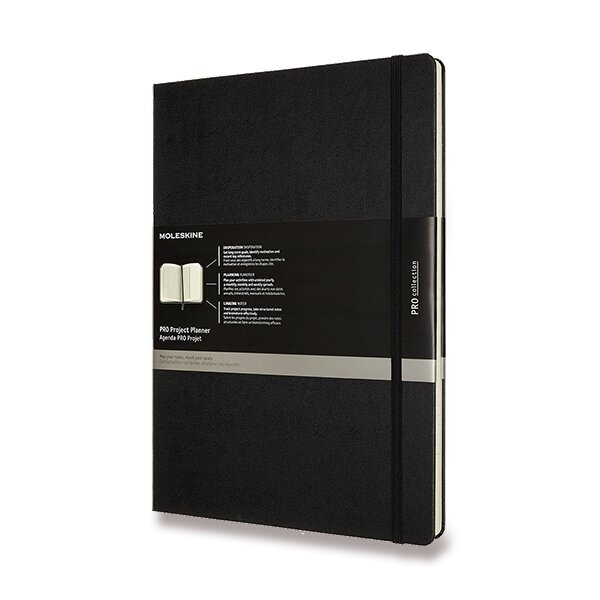 Zápisník určený profesionálům, spojuje výhody diáře s výhodami zápisníku. Má pevnou, ve hřbetu šitou vazbou v kartonových deskách, obepnutý pružnou páskou proti samovolnému otevírání. Zápisník je rozdělený do několika sekcí. Stránky pro plánování, dlouhodobých cílů, nedatovaná plánovací sekce s ročním, 4měsíčním, měsíčním a týdenním přehledem, stránky pro zápis aktivit pro plnění cílů projektů, sktrukturované stránky, pro poznámky a brainstorming. Součástí jsou vřazené stránky na úkoly, které lze vyjmout a lepicí štítky na vytvoření různých sekcí. Papír s gramáží 70 g/m2, neobsahuje, kyseliny.          , ROZMĚR: 21 X 29,7 CM, 144 LISTŮ, O ZNAČCE MOLESKINE:, Příběh značky MOLESKINE se začal psát již v 19. století ve Francii, kdy vznikl produkt s velkou tradicí. Zápisníky MOLESKINE si oblíbili významní umělci a myslitelé jako Vincent van, Gogh, Pablo Picasso či Ernest Hemingway. Dnes je značka Moleskine synonymem pro kulturu, cestování, kreativitu a osobní identitu, a to jak v reálném světě, tak i ve světě digitálním., MOLESKINE je kreativním a nápaditým partnerem pro dnešní dobu >>
